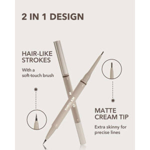 قلم رسم الحواجب 2 في 1، يتميز جانب واحد بطرف كريمي غير لامع مقاوم للماء مصمم نحيفا جدا للخطوط الدقيقة التي تحاكي شعرك الطبيعي ويوفر الطرف الاخر سائلا فاخرا مقاوما للماء والعرق والزيوت ومشبعا بأصباغ متعددة للحصول على ظل مستديرا جيدا.
